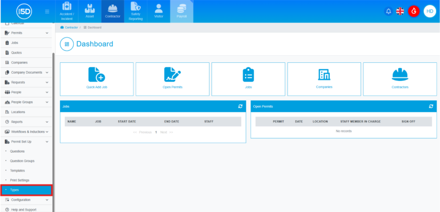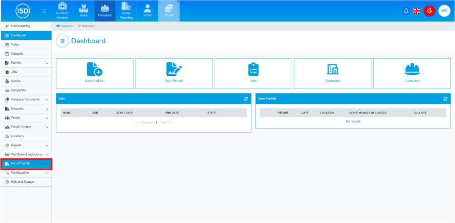 - From anywhere in the Contractor module, use the left-hand navigation panel and click ‘Permit Setup’.