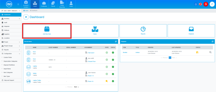 - Using the left-hand navigation menu, click ‘Dashboard’ and then click ‘Add New Item’.