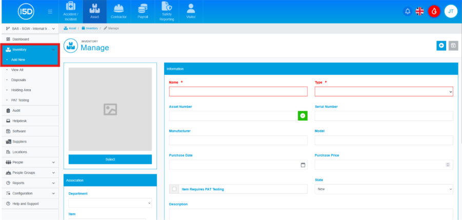 - You can also access this page by going to ‘Inventory’ on the left-hand navigation menu and selecting ‘Add New’.