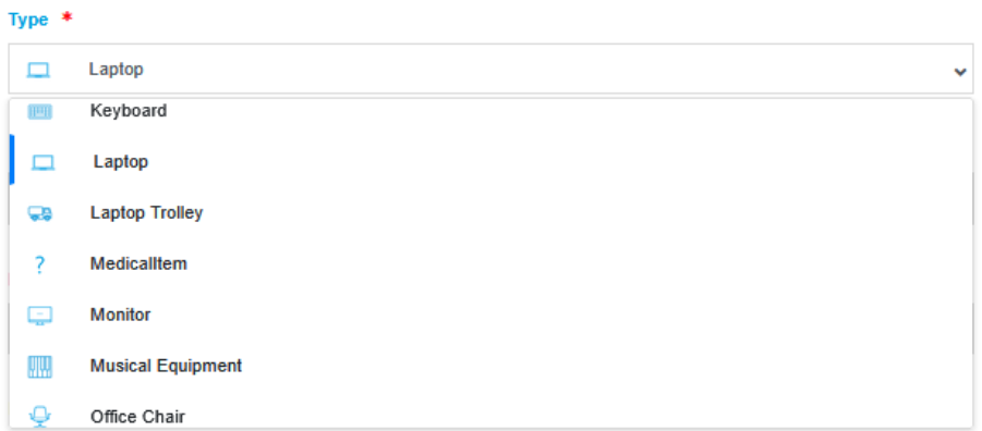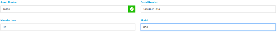 - Enter an Asset Number to log the item. This must be unique. If the number is valid, you will see a green tick to the right of the entry field; if not, you will see a red cross.
