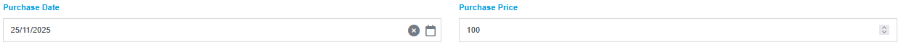 - Next, you can enter a Purchase Date and Purchase Price for the item, if you wish to use the systems Depreciation feature you will need to enter these details but otherwise, they are optional.