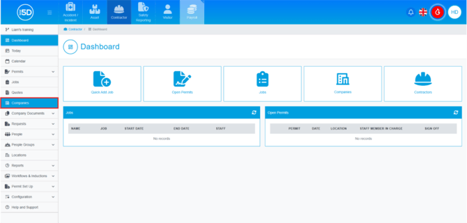 - Using the left-hand navigation panel, click ‘Companies’.