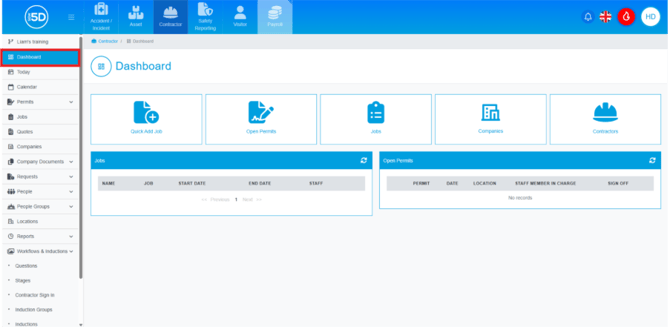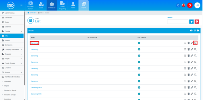 - From the contractor module, start by clicking ‘Jobs’ on the left-hand navigation panel.