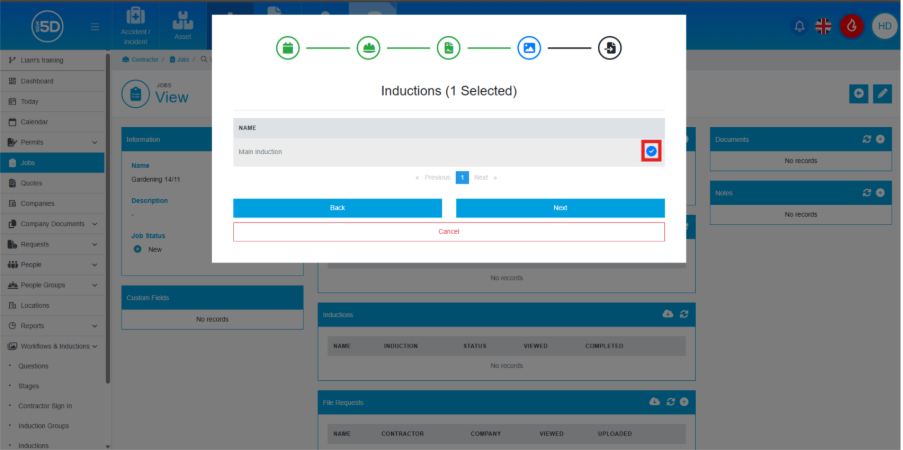 - On this page you will be able to select what inductions that are sent out. Select the induction you want sent to the contractors. N.b. It will not send out an induction if the contractor’s current induction is currently valid.