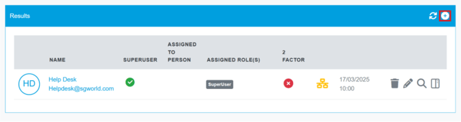 - To create a new account, look at the top right of the blue box labelled ‘Results’ and click the white plus symbol.