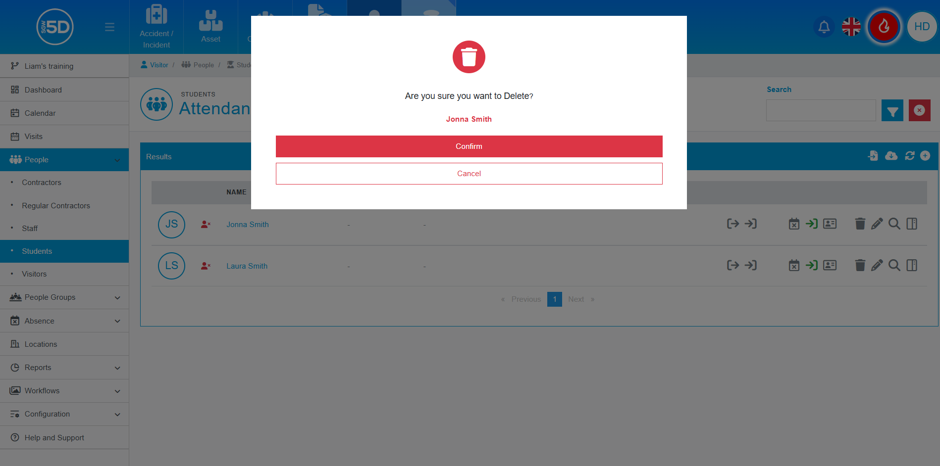- A pop-up will appear and will ask you to confirm that you want to delete this record. If you click 'Confirm' it will delete the record.