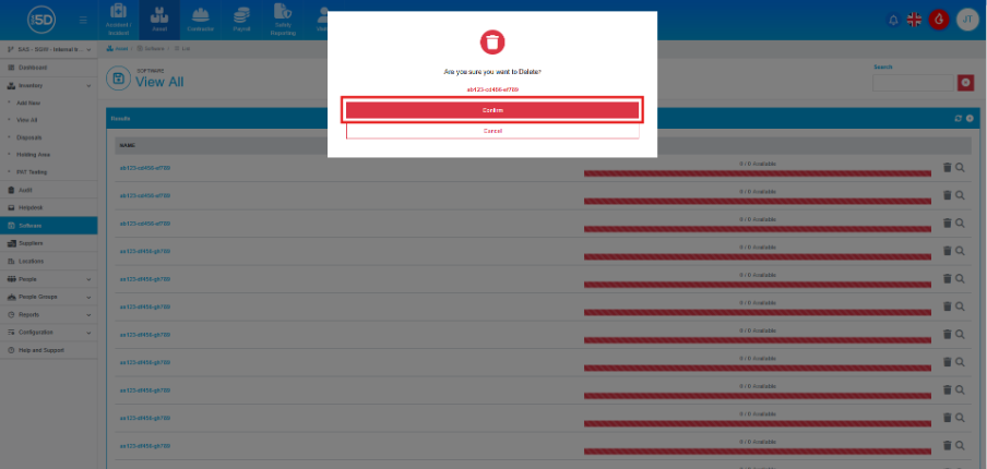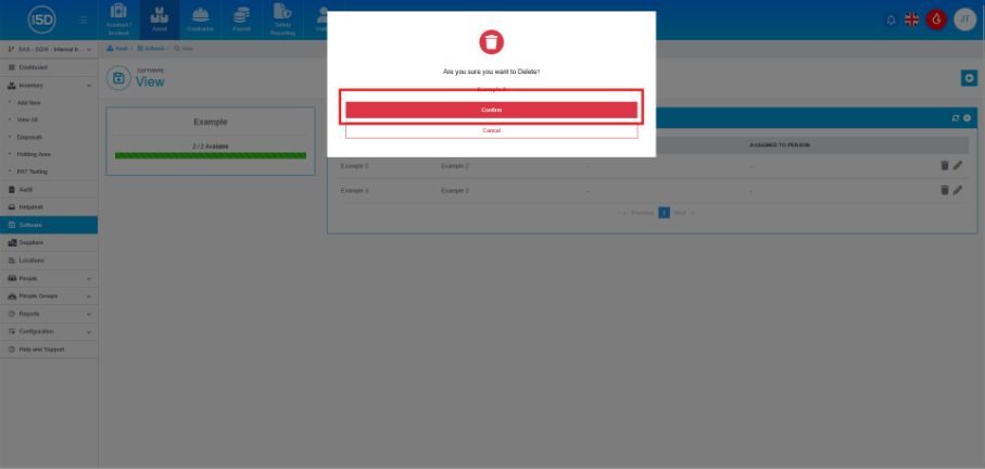 - You will then be asked to confirm the deletion, click ‘Confirm’ to delete the record.