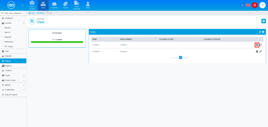 - You can delete either the licenses under a record or the record as a whole. To delete the full record, including all licenses, click the Bin icon next to the record. Please note that deleted records cannot be restored.