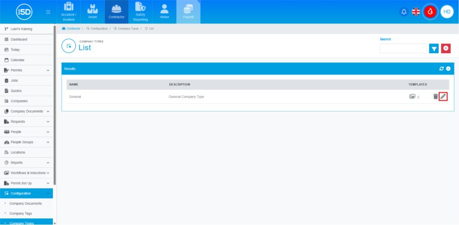 - This will take you to a list of all your current company types. To edit an existing company type, click the pencil icon.