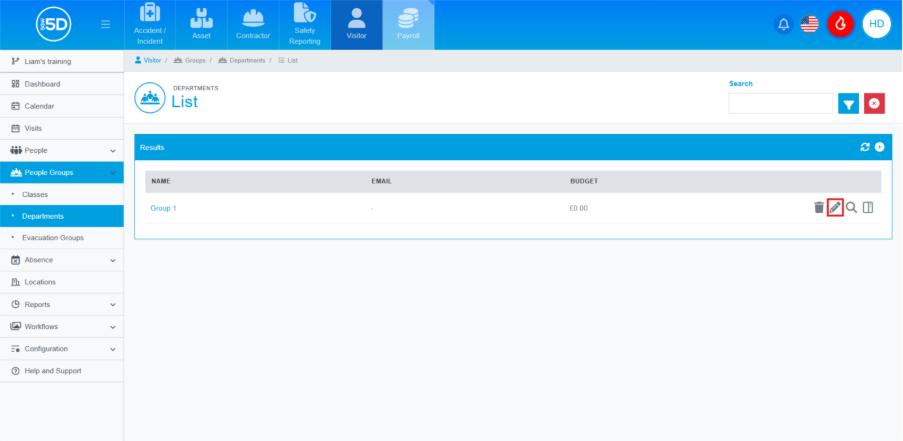 - To edit a department, click the pencil icon on the record you wish to edit.