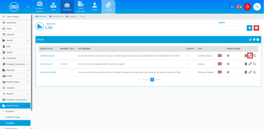 - This will take you to the list of all your current templates. To edit a template, click the pencil icon on the row of the template you wish to edit.