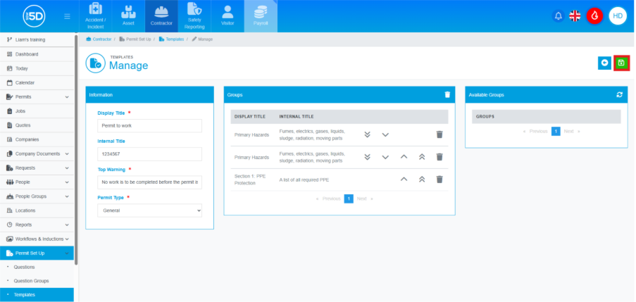 - From anywhere in the Contractor module, use the left-hand navigation panel and click ‘Permit Set up’.