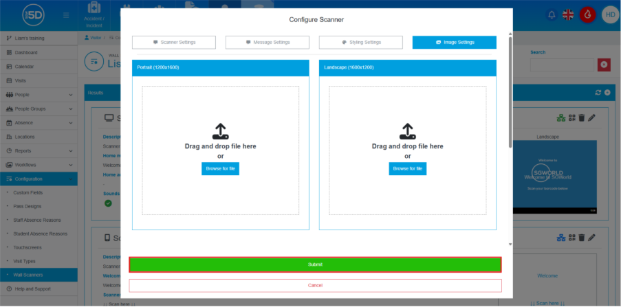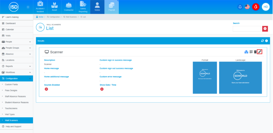 - To edit a wall scanner, click ‘Configuration’ on the left-hand navigation panel.