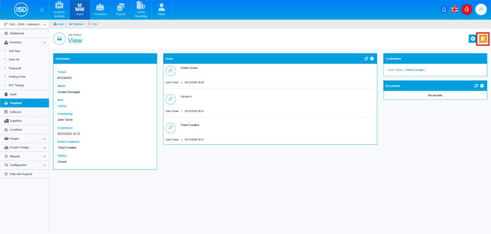- Once you have closed the ticket you can reopen it by clicking the yellow door icon.