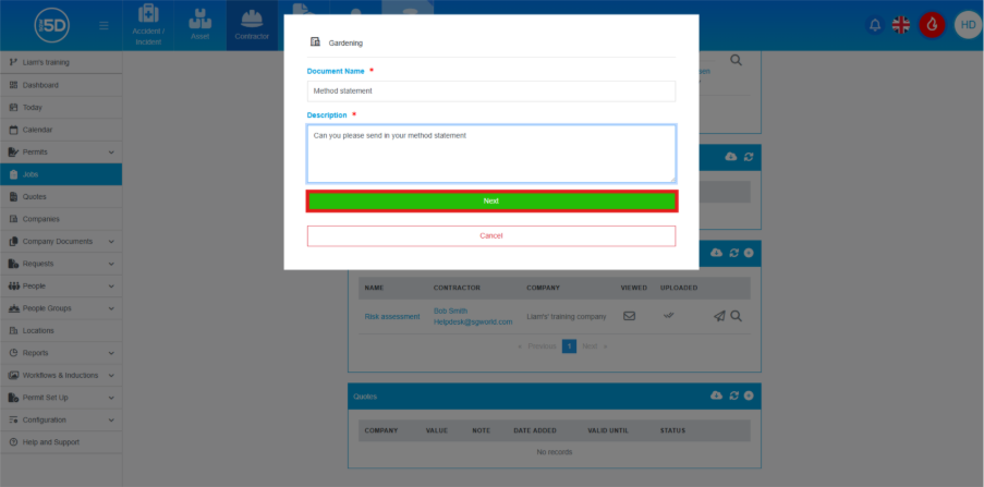 This guide is to walk the reader through how to request documentation, such as risk assessments and method statements, but from the portal.