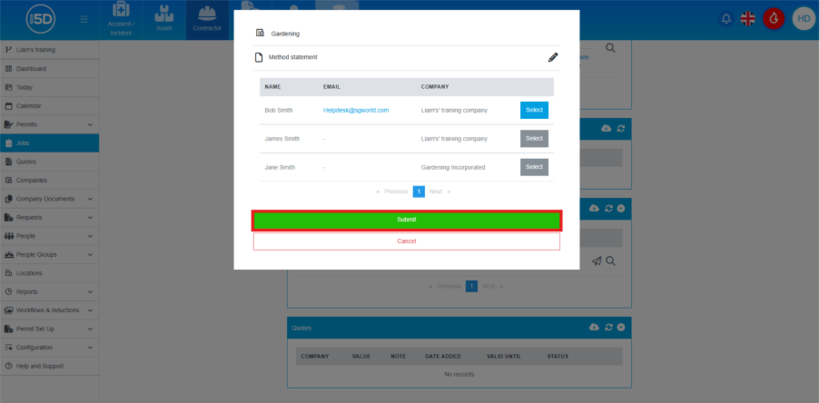 - Click ‘Submit’ to send the email.