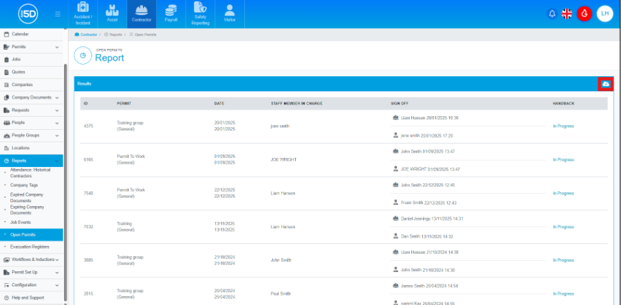 - From the contractor module, click ‘Reports’ on the left-hand side.